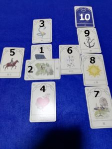 カードの並べ方は基本(一枚目~10枚目)の順に並べますが、特にこだわる必要はありません。ただあまり上から順番に並べていくと、クライアントに対するパフォーマンスが薄れますから、できれば基本の並べかたに準じたほうがいいかしれません。