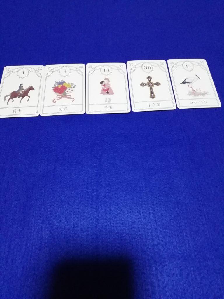 フォーカードは現状を見る占い方法で、その対策は以降、一枚引きで必要な枚数だけ順次出して占っていってください。