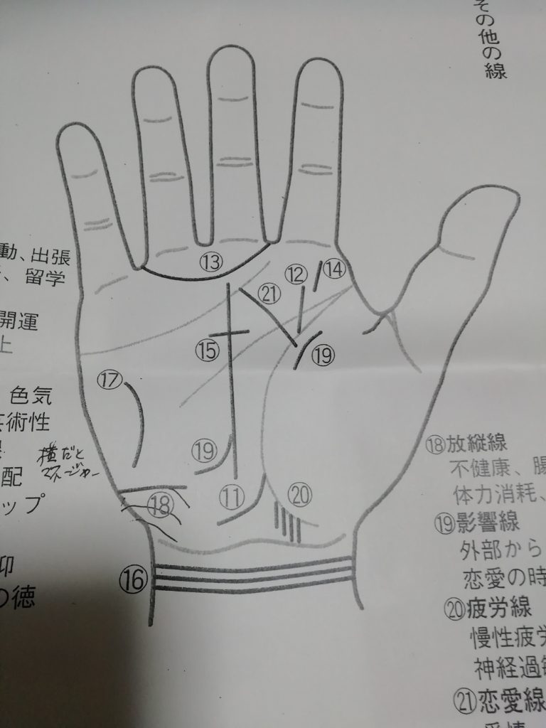 11、正義線、感情線の下に平行に出てくる線、正義感強く、権力に逆らう