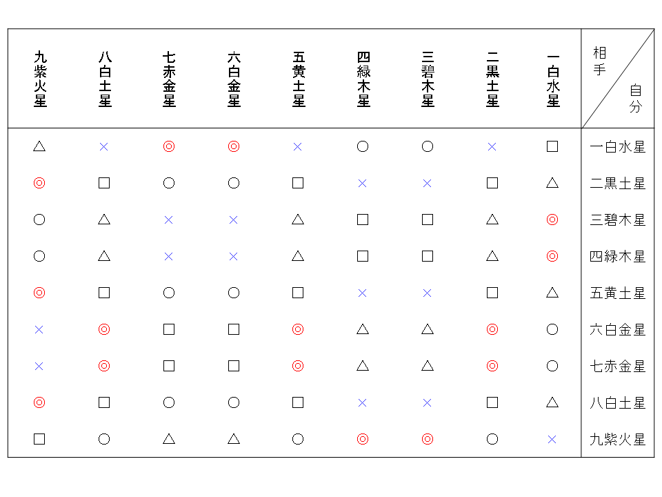 九星気学で悪い相性は、相剋(そうこく)と呼ばれる関係のことになります。
