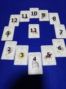 「隠されたキーワード」について示します。総合的に鑑定をして現状をよくするためのヒントのカードです。総合運や時期読みの場合は、1年がどのような内容かを暗示しています。