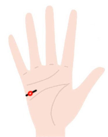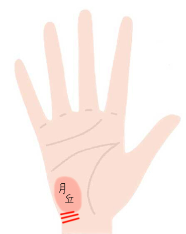 月丘とは、小指側の手首上にある膨らんでいる部分のことで、芸術センスや才能、縁を表します。