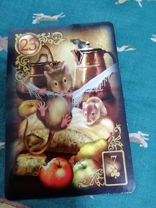 トランプ占い: ルノルマンカードの鼠はクラブの7を代表します。 それは小さな財政的利益を示します、そして、給付金は受領されようとしています。