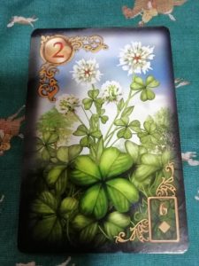 キーワード:小さな幸運、ささやかな日常の幸せ、ラッキー、運がいい、偶然、占い、短い期間、植物、チャンス・思いがけない幸せ・満足・誠実・楽しいこと・健康・愛情・春・薬・厄除け・お守り・幸運。希望。嬉しさ。ギャンブル。勝利。良い気分。神経系・お金